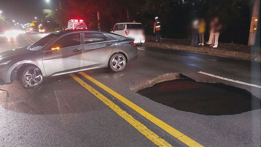 경주 도로서 2m 땅꺼짐···피하려다 승용차 3대 추돌