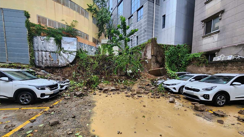 대구서 주차장 인근 담벼락 무너져···차량 5대 파손