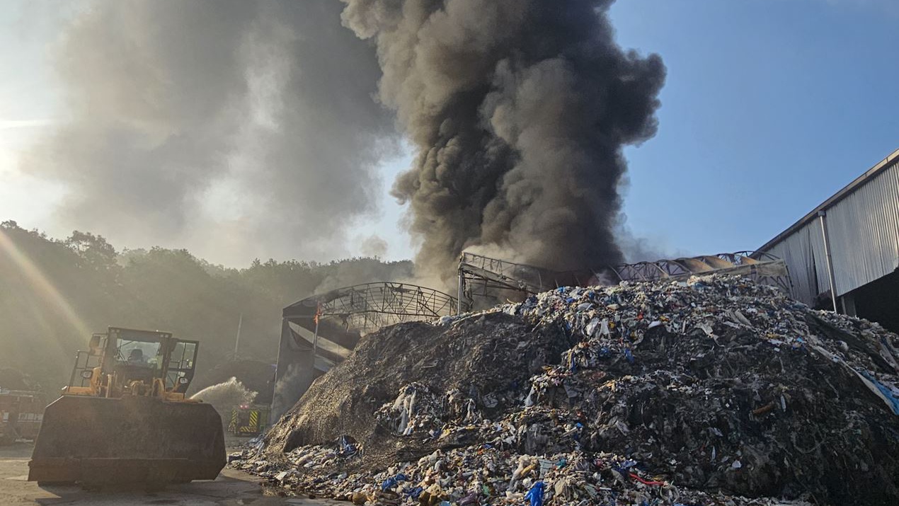 경북 상주 자원재활용 시설 화재···굴착기 동원해 진화 중