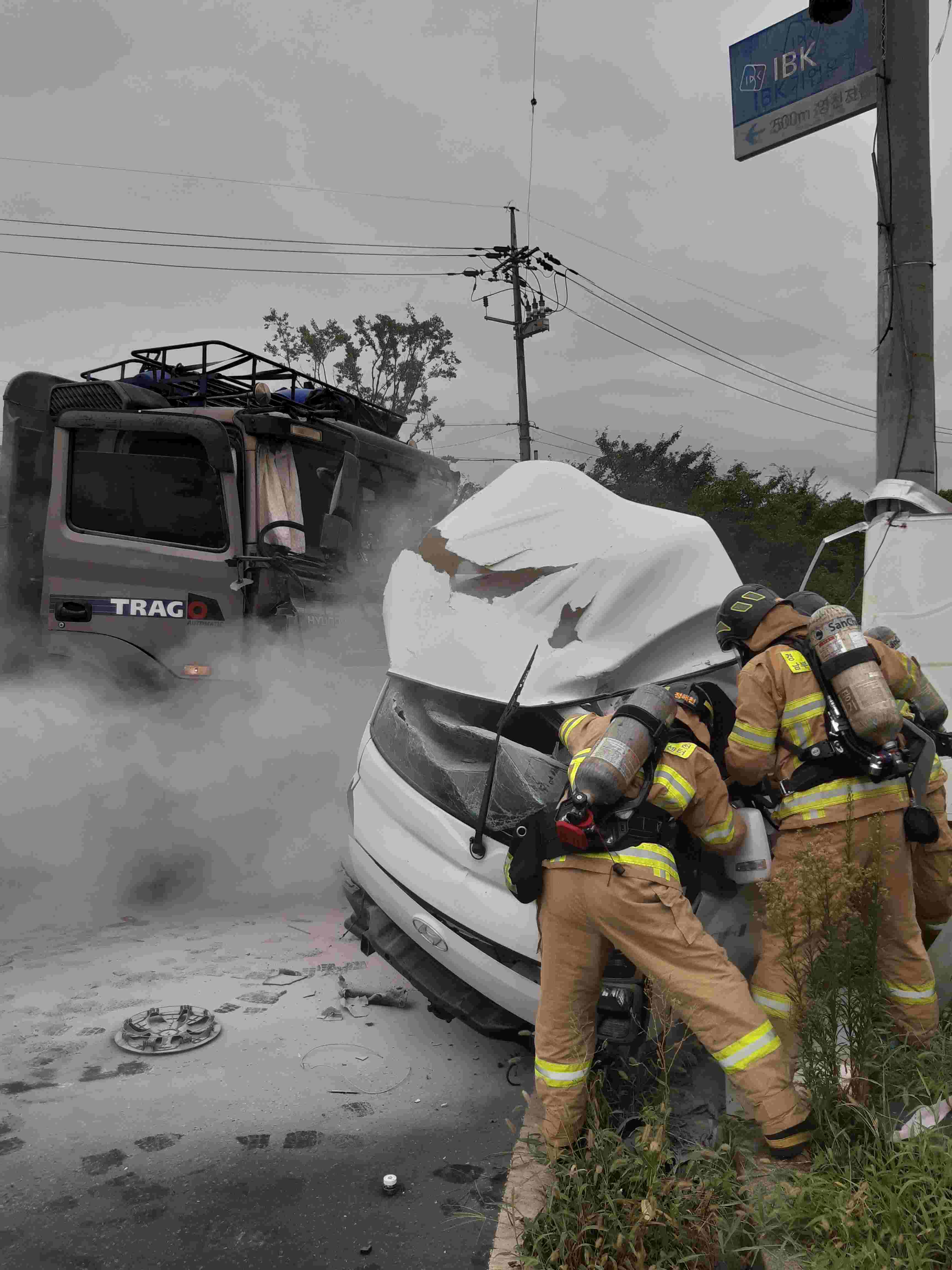 영천에서 화물차끼리 충돌해 화재, 50대 운전자 숨져