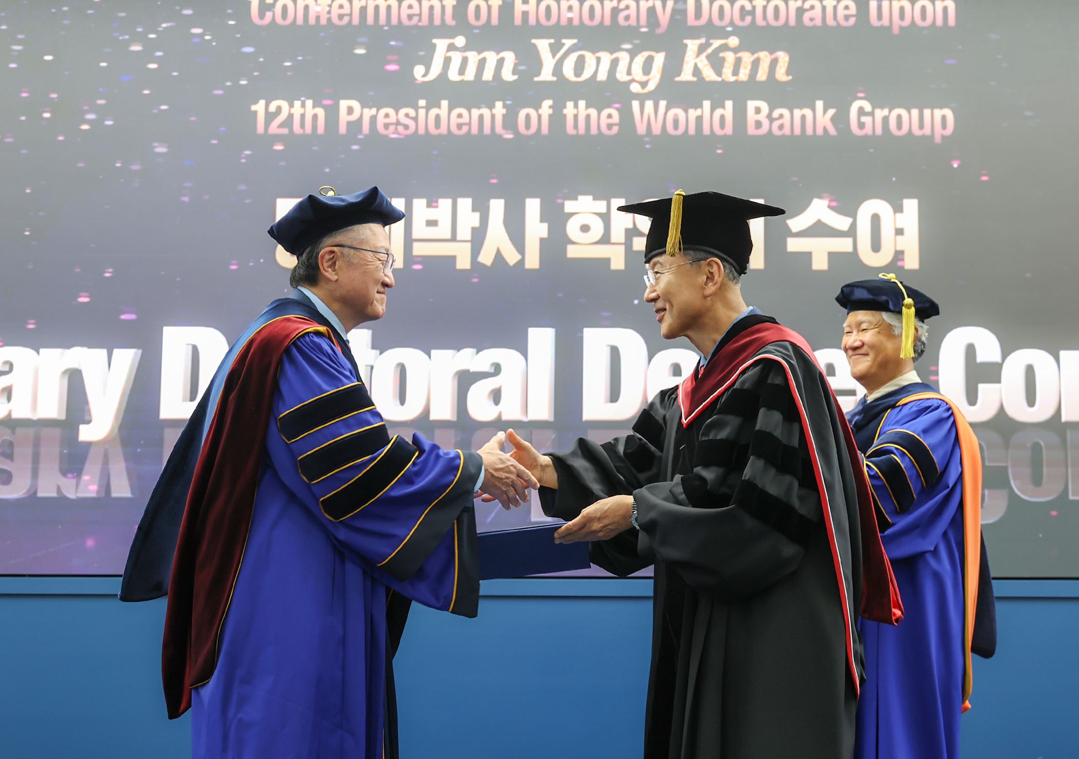 김용 전 세계은행 총재가 개발도상국 빈곤 극복과 세계 공중보건 분야 발전에 기여한 공로를 인정받아 7월 24일 영남대에서 '명예 국제개발학 박사’ 학위를 받았습니다.김 전 총재는 '보이지 않는 것에 대한 믿음'을 주제로 한 특강에서 영남대 외국인 유학생과 교직원 등을 대상으로 40년간의 세계 보건 활동에 대한 경험 ...