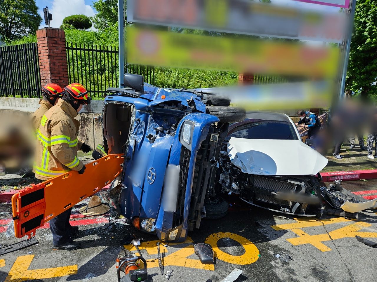 사진 제공 대구소방본부7월 17일 오전 9시 50분쯤 대구시 달성군 논공읍의 한 교차로에서 30대 외국인 남성이 몰던 승용차가 신호를 어기고 직진하다, 오른편에서 좌회전하던 1톤 화물차와 부딪혔습니다.사고 충격으로 화물차가 넘어지면서 안에 타고 있던 60대 남성 등 4명이 다쳐 병원으로 옮겨졌습니다.경찰은 블랙박스...