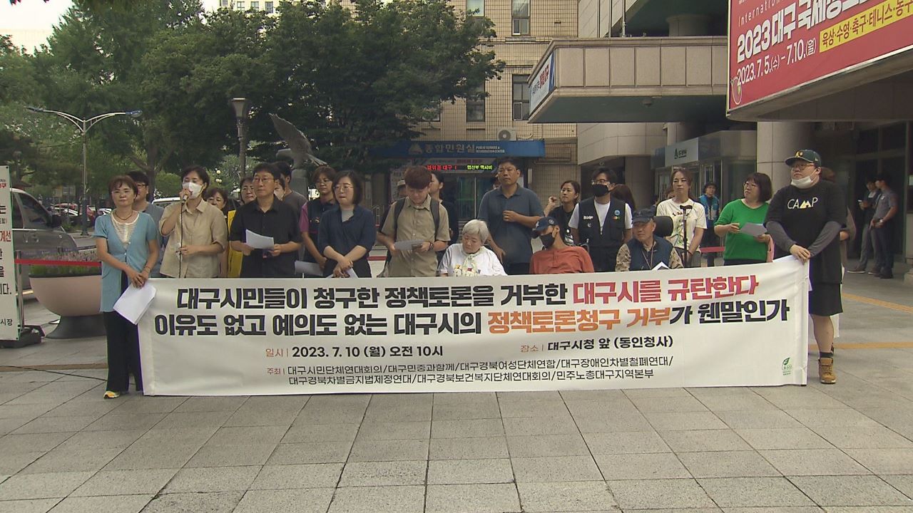 ◀앵커▶정책토론청구제도라는 게 있습니다.시민들이 대구시에 주요 정책과 관련한 토론회를 열어달라고 요구하는 할 수 있도록 한 건데요.이런 토론회를 통해서 주민들이 공개적으로 자신의 의견도 말하고, 정책이 어떻게 진행되는지 궁금한 점도 들을 수 있습니다.시정에 대한 주민참여를 보장하기 위한 제도죠. 그런데 최...