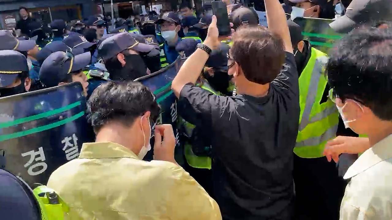 퀴어축제 차량 막으려는 대구시 공무원들과 경찰 대치