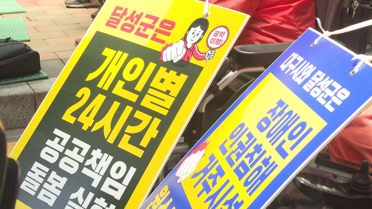 ◀앵커▶장애인을 묶어놓고 질식해 숨지게 한 대구 달성군의 한 사회복지재단 시설에서 또 학대 사건이 발생했습니다.해당 재단이 운영하는 시설에서는 2014년부터 폭행과 학대, 인권 침해 사례가 계속 나오고 있는데, 이런 시설, 더는 운영하지 못하게 해야 한다며 장애인 가족과 활동가들이 달성군청 앞에서 무기한 천막농...