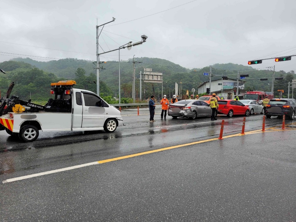 사진 제공 경북소방본부5월 28일 오후 2시 40분쯤, 문경시 호계면의 한 교차로에서 견인차가 신호대기 중이던 승용차를 들이받으면서 4중 추돌사고가 났습니다.이 사고로 운전자 60대 남성 등 8명이 다쳐 병원으로 옮겨졌습니다.경찰은 정확한 사고 경위를 조사하고 있습니다.