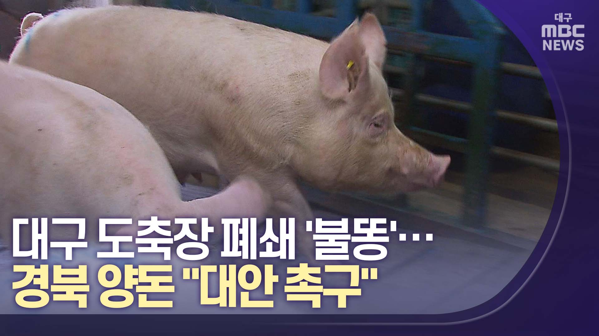 ◀앵커▶홍준표 대구시장이 대구 농수산물도매시장 이전 방침을 밝히면서, 경북의 양돈 농가들이 난데없는 유탄을 맞게 생겼습니다.이전 작업 시작과 함께 도매시장에 붙어 있던 도축장을 폐쇄하기로 한 건데, 이렇게 되면 양념 돼지나 돼지국밥으로 소비되는 연간 13만 마리의 비규격 돈을 도축할 곳이 사라져 버리게 됩니다...