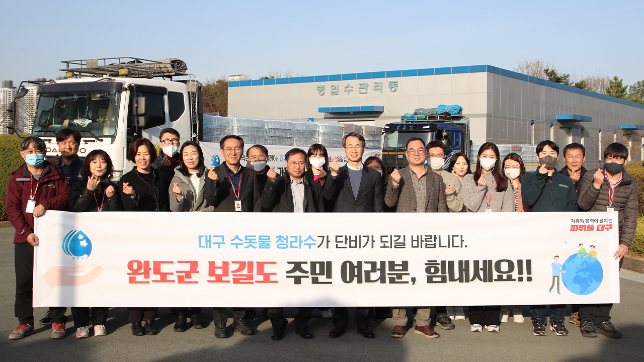 사진 제공 대구시대구시는 가뭄으로 식수난을 겪고 있는 전라남도 완도군 보길도에 대구 수돗물 '청라수' 50,000병을 지원합니다.청라수 50,000병은 보길도 주민 2,600여 명이 일주일 이상 마실 수 있는 양으로 보길면사무소에 물을 전달하기로 했습니다.전남의 최근 6개월 동안 강수량은 평년의 71% 수준에 머물러 있으며,...