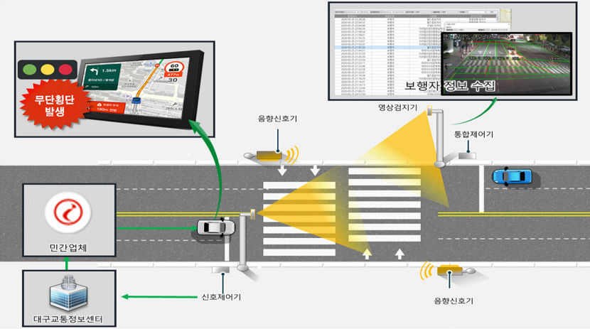 사진 제공 대구시대구시는 서구의 어린이보호구역 12곳에서 인공지능 기반의 안전 통합 횡단보도 플랫폼을 구축합니다. 이번 플랫폼은 인공지능 기반의 카메라가 횡단보도 주변의 보행자와 차를 감지해 상황에 맞는 정보를 보행자와 차 내비게이션에 제공하는 것입니다. 무단횡단하려는 보행자를 발견하면, 음성 안내로 횡...
