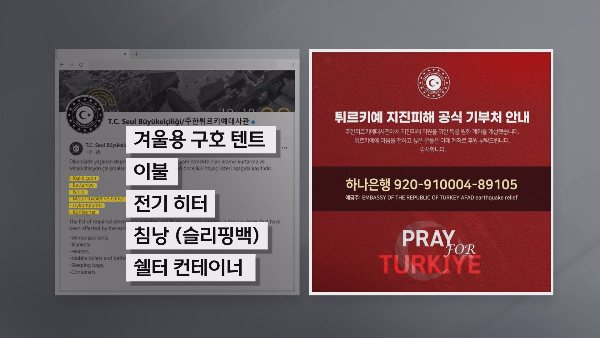 ◀앵커▶튀르키예와 시리아에 지진이 강타한 지 8일째입니다.사망자 수는 3만 3천 명을 넘겼습니다. 혹한의 날씨에 거리로 내몰린 이재민만 수천만 명에 이르는 것으로 추산되면서 전 세계에서 구호의 손길이 이어지고 있는데요.우리 지역에서도 이들을 돕겠다는 마음들이 모이고 있습니다.취재기자 나와 있습니다. 손은민 기...