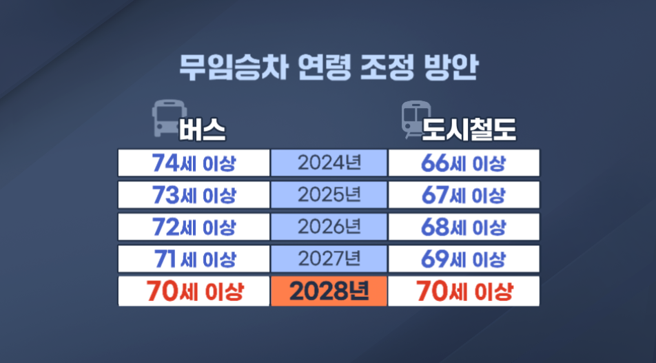 대구시는 오는 6월 말부터 75세 이상 노인을 대상으로 시내버스 무임승차제를 시작하고, 도시철도 무임승차 나이를 해마다 한 살씩 단계적으로 높이기로 했습니다. "대한노인회를 비롯한 노인 세대의 의견을 수렴한 결과, 도시철도 무임승차 나이를 70세 이상으로 높이면, 65~69세의 혜택이 일시에 사라져 이동권 제약 등의...