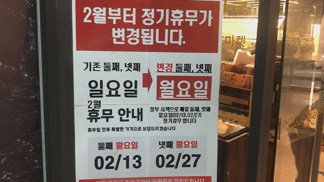 대구의 모든 대형마트가 2월부터 일요일 대신 월요일에 문을 닫습니다. 대구시에 따르면 8개 구·군은 대형마트 의무 휴업 평일 전환과 관련해 1월 13일부터 20일간 행정 예고를 한 뒤 2월 6일부터 8일까지 유통업 상생발전협의회를 열어 찬성 의결했습니다. 따라서 대구의 대형마트 의무 휴업일은 둘째·넷째 일요일이 아닌 ...