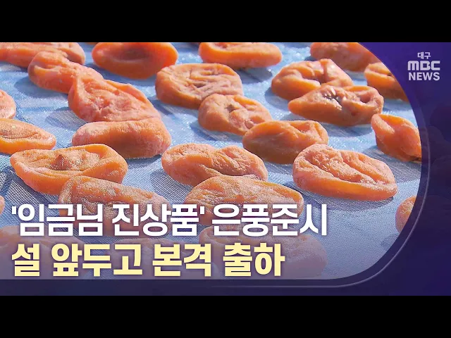 ◀앵커▶설을 앞둔 이 시기에 딱 한 달 동안만 맛볼 수 있는 귀한 곶감이 있습니다.'임금님 진상품'으로 유명한 예천 은풍준시인데요, 예년보다 작황이 좋다고 합니다.곶감 출하와 판매가 한창인 은풍준시 마을을 김서현 기자가 다녀왔습니다.◀기자▶소백산맥으로 둘러싸인 조용한 산골 마을, 집집마다 주홍빛 곶감이 야외 건...