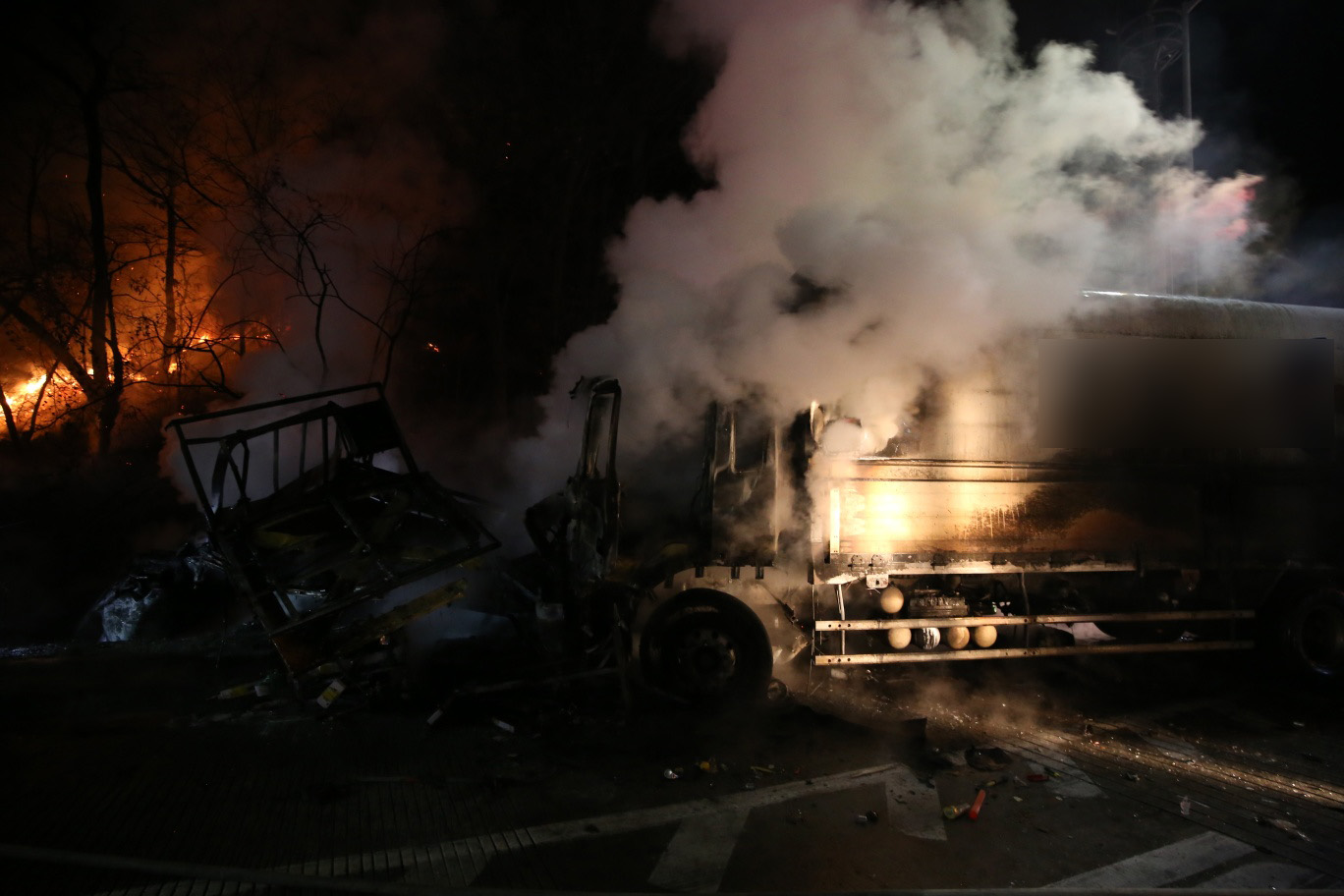 사진제공 경북 구미소방서12월 29일 11시쯤, 경북 구미시 중부내륙고속도로 선산휴게소 근처에서 화물차와 택시 등 차량 5대가 추돌하는 사고가 났습니다.14톤 화물차가 야간에 도로 보수 공사를 준비 중이던 작업차 3대를 한꺼번에 들이받은 뒤 튕겨 나가면서 옆 차로에서 지나던 택시와도 부딪힌 것으로 조사됐습니다.이 ...