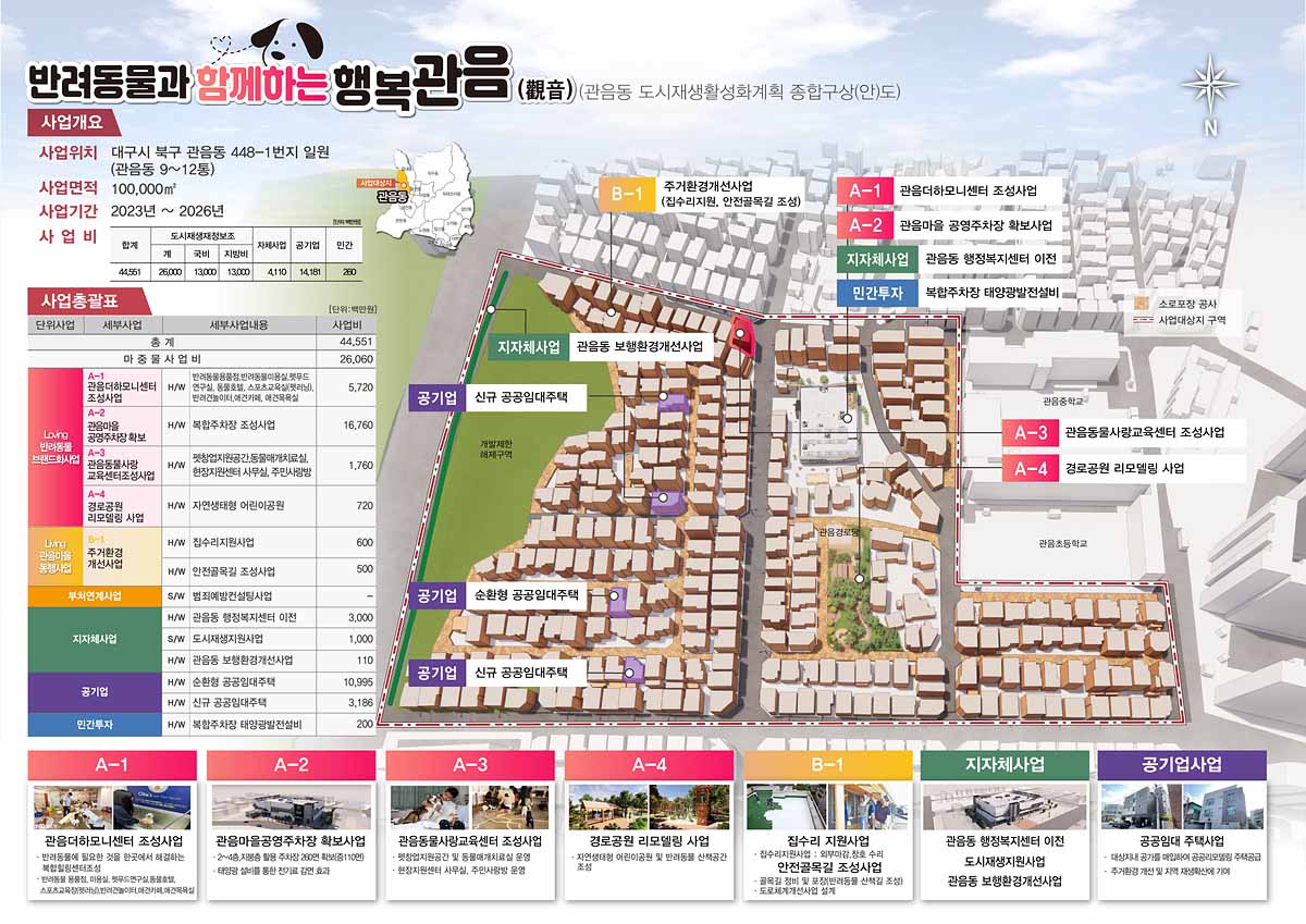 국토교통부가 추진하는 첫 도시재생사업에 대구 북구·달성군과 경북 울진군이 선정됐습니다.대구 북구에는 2023년부터 2026년까지 국비 등 445억 5,000만 원의 사업비가 투입돼 반려동물 친화마을 조성 등을 통해 지역 경제성장 거점을 조성하는 '지역특화재생 사업'이 추진됩니다.대구 달성군도 같은 기간 국비를 포함한 ...