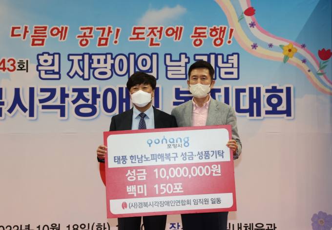 제43회 흰 지팡이의 날을 맞아 경북 시각장애인 복지대회가 포항실내체육관에서 개최됐습니다.이번 행사에는 시각장애인과 가족 등 천 6백여 명이 참여한 가운데 흰 지팡이가 상징하는 자립과 성취의 의미를 인식하고, 시각장애인의 권익 옹호와 복지증진에 헌신한 유공자를 표창했습니다.시각장애인 가족 장학생들에게 장...