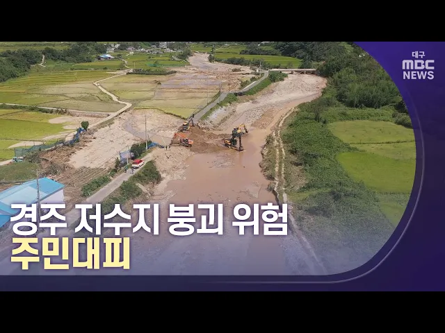◀앵커▶태풍 여파로 경주의 저수지 3곳이 붕괴 위험에 처하기도 했습니다.또다른 저수지에도 위험 징후가 발견돼 3개 마을 주민들이 긴급 대피했습니다.문화재도 추가 피해를 막기 위해서는 신속한 복구가 이뤄져야 하는데, 국비 지원이 절실합니다.임재국 기자가 보도합니다. ◀기자▶경주시 문무대왕면의 한 농업용 저수지 ...
