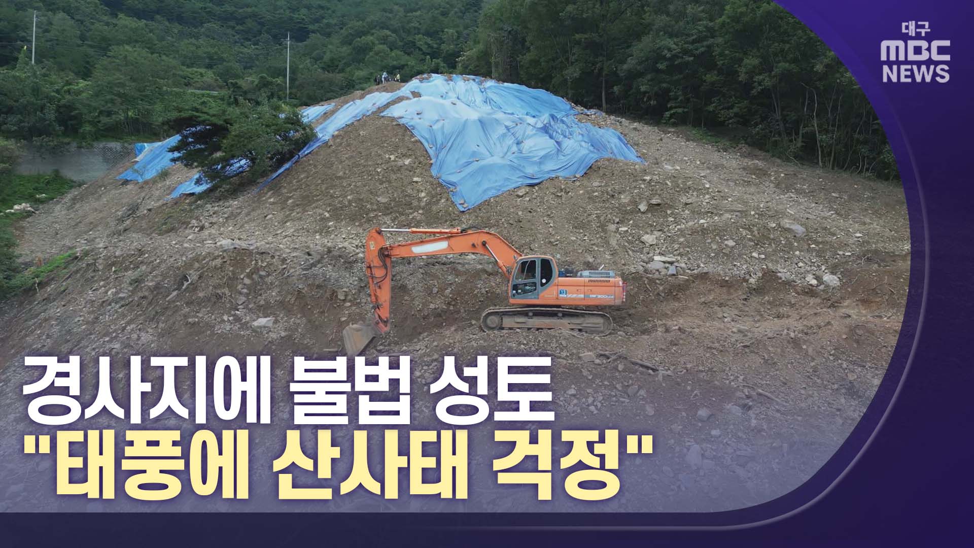 ◀앵커▶이렇게 역대급 태풍이 다가오면서 공사장과 사업 현장의 안전도 걱정입니다. 경북 청도의 한 마을에서는 주민들이 산사태 걱정에 잠 못 이루는 밤을 보내야 할 처지에 놓여 있습니다.가파른 비탈에서 농지개량 사업이 벌어지고 있는데, 안전조치 없이 엄청난 양의 흙만 쌓아 놓았다는 겁니다.양관희 기자가 취재했습...