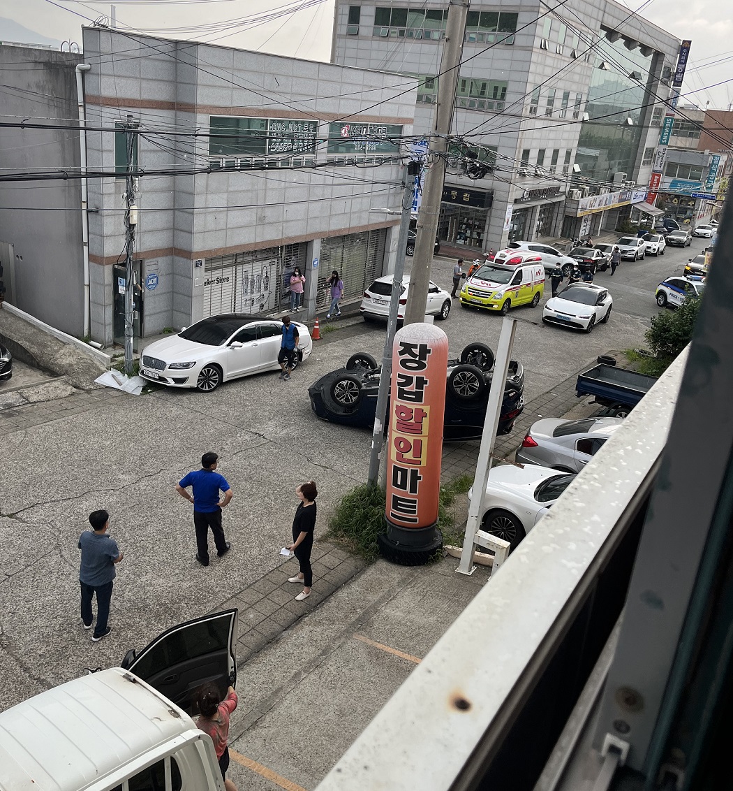 대구서 승용차 전복 사고···주민들이 구조