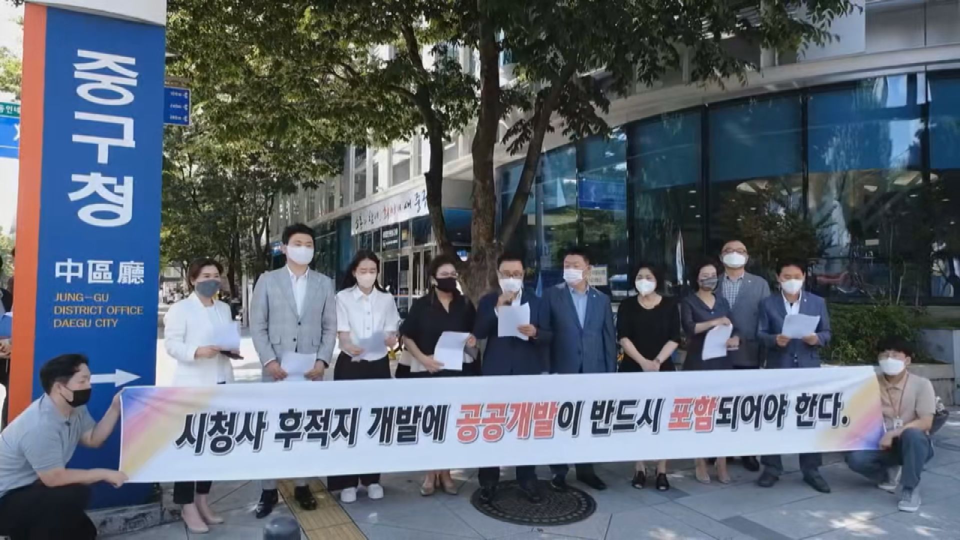 홍준표 대구시장이 SNS를 통해 "대구시 신청사 건립은 현 동인동 청사 매각 대금과 국비 지원으로 추진될 것"이라고 밝히자 중구 주민들이 우려의 목소리를 내고 있습니다.대구 중구의회와 중구 주민들로 이뤄진 '시청 후적지 개발추진위원회'는 중구청 앞에서 기자회견을 열고 "시청사 이전 터 개발에 공공개발이 반드시 ...