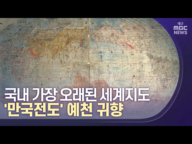◀앵커▶우리나라에서 가장 오래된 세계지도인 '만국전도'가 도난된 지 29년 만에 고향인 예천으로 돌아왔습니다.1661년에 만들어진 이 지도에는 울릉도와 백두산이 표시돼 있는데요,조선 중기에도 울릉도와 백두산을 우리 영토로 인식하고 있었다는 근거 자료로도 활용 가치가 높다는 평가입니다.김경철 기자입니다. ◀기자▶...