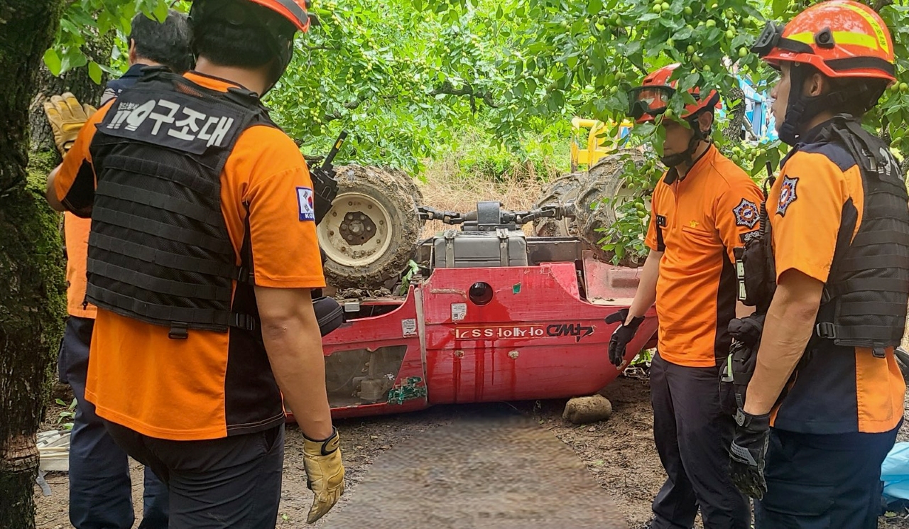 사진 제공 경북 청도소방서8월 11일 오후 1시 42분쯤 경북 청도군 매전면의 한 밭에서 방제 작업을 하던 60대 남성이 넘어진 농약살포기에 깔려 병원으로 옮겨졌지만 숨졌습니다.아침 일찍 밭에 갔던 남성이 돌아오지 않자 찾으러 간 가족이 사고 현장을 목격하고 신고했습니다.경찰은 "언덕에서 농기계 바퀴가 튕기며 사고...