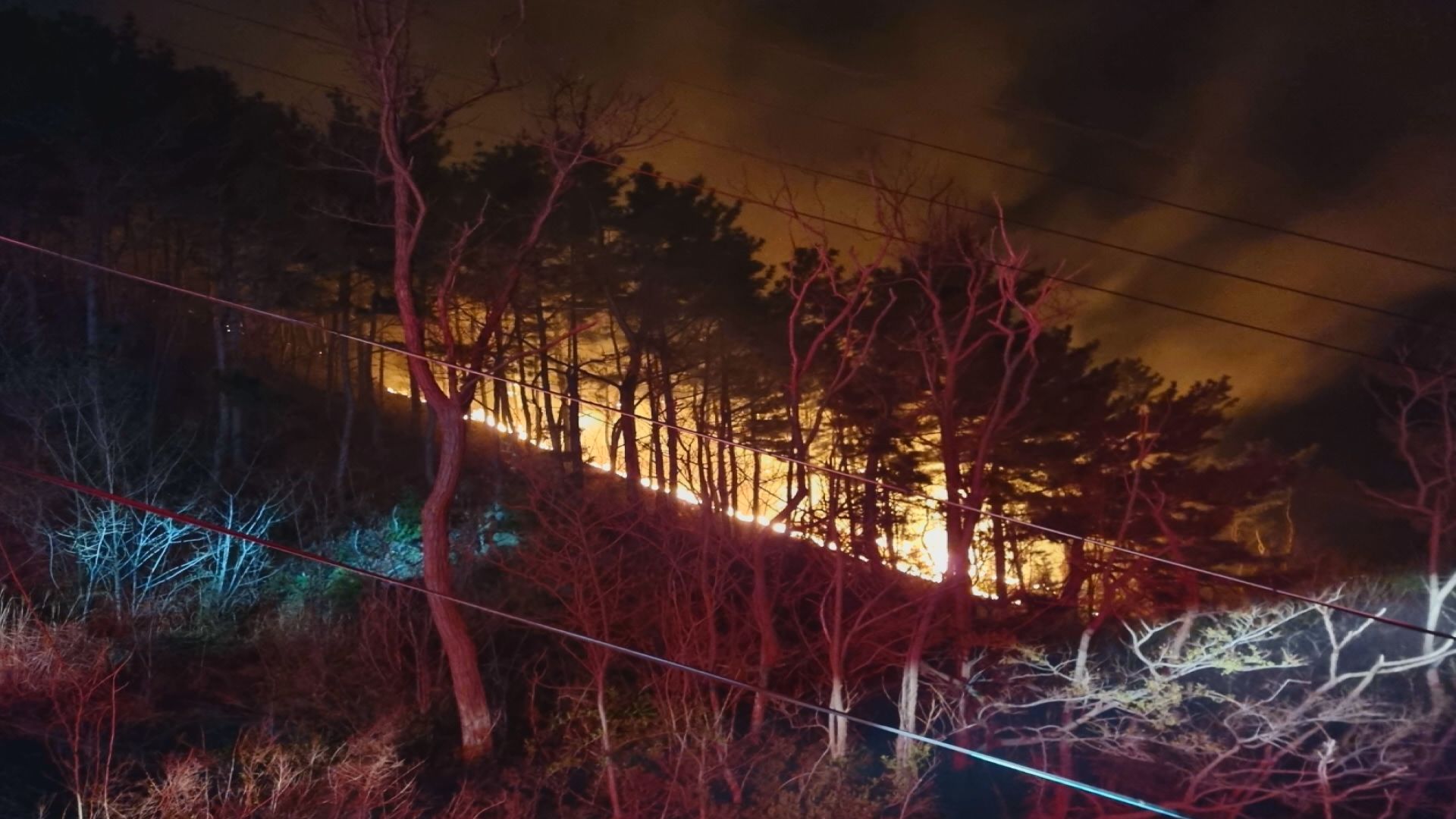 4월 10일 오후 1시 10분쯤 경북 군위군 삼국유사면 화북리 옥녀봉 일대에서 난 산불이 이틀째 이어지고 있습니다.산림청은 해가 뜨자 헬기 37대, 인력 620여 명을 차례로 현장에 투입하고 진화작업을 벌이고 있습니다.현재까지 산림 165ha가 불에 탔고 인명피해나 시설물 피해는 없는 것으로 파악됐습니다.해발 526m, 산 7...