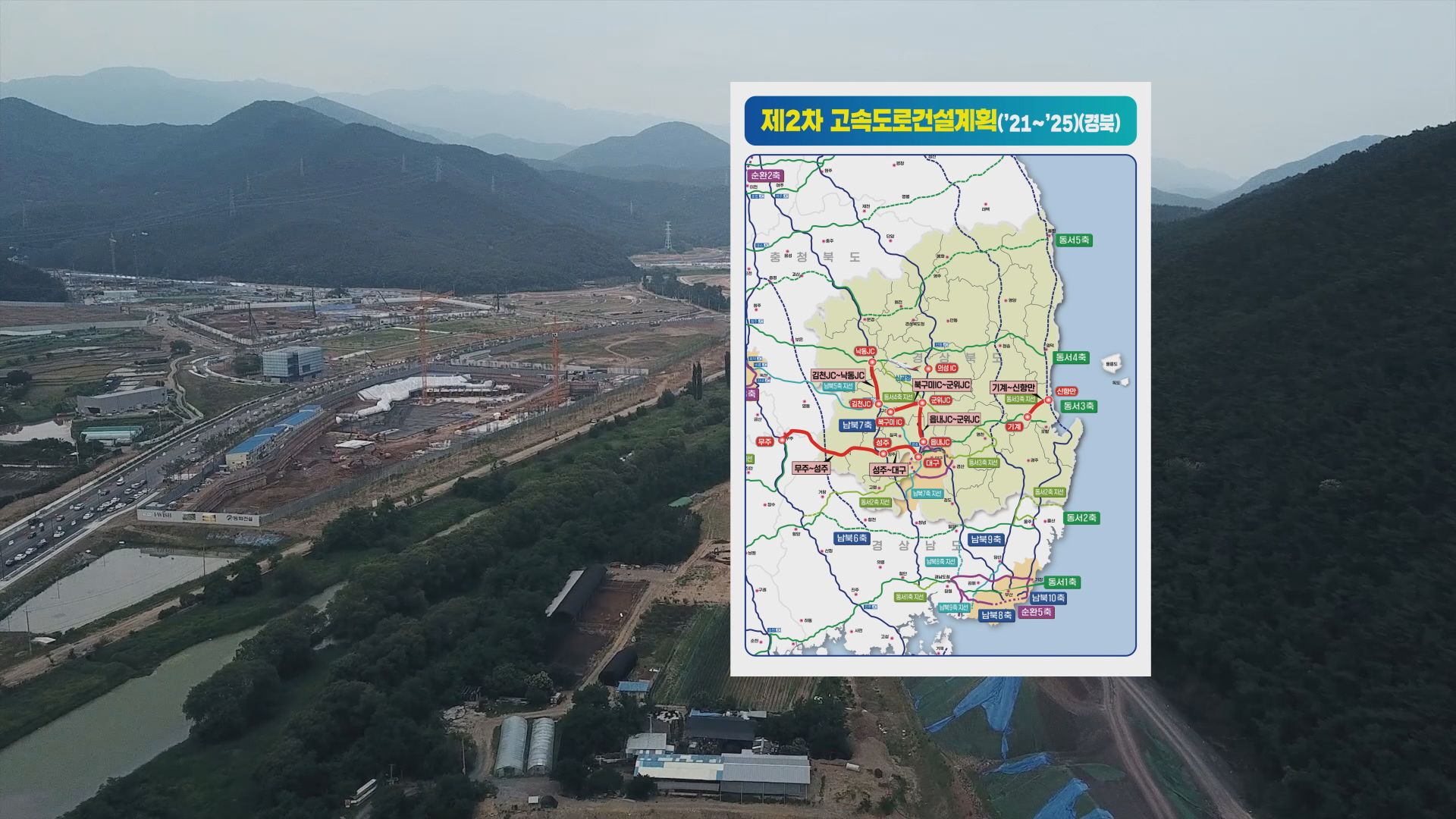 국토교통부가 발표한 제2차 고속도로 건설 5개년 계획에 따라 경북에서는 6개 지구 사업이 확정됐습니다.신설 구간은 경북 성주와 칠곡 지천을 잇는 성주-대구 간 고속도로 18.3km와 전북 무주와 성주간 고속도로 68.4km, 북구미나들목과 군위분기점 간 고속도로 24.9km, 포항 기계와 신항만 고속도로 22.8km 4개 지구입니...