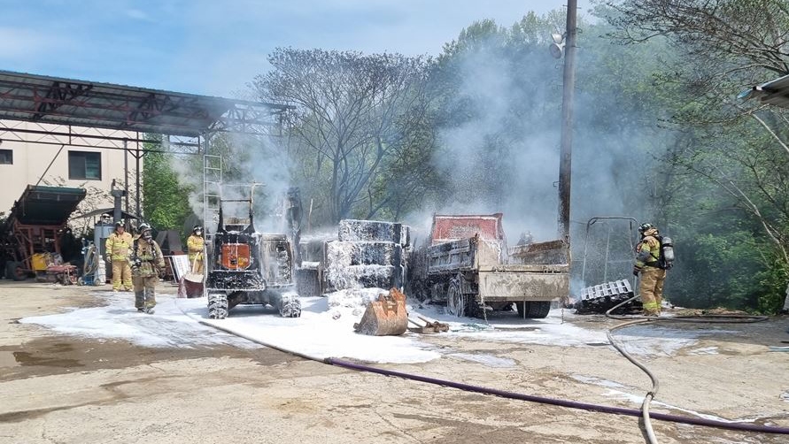 경북 경주서 공터에 세워져 있던 화물차·굴착기 화재···재산 피해 4천여만 원