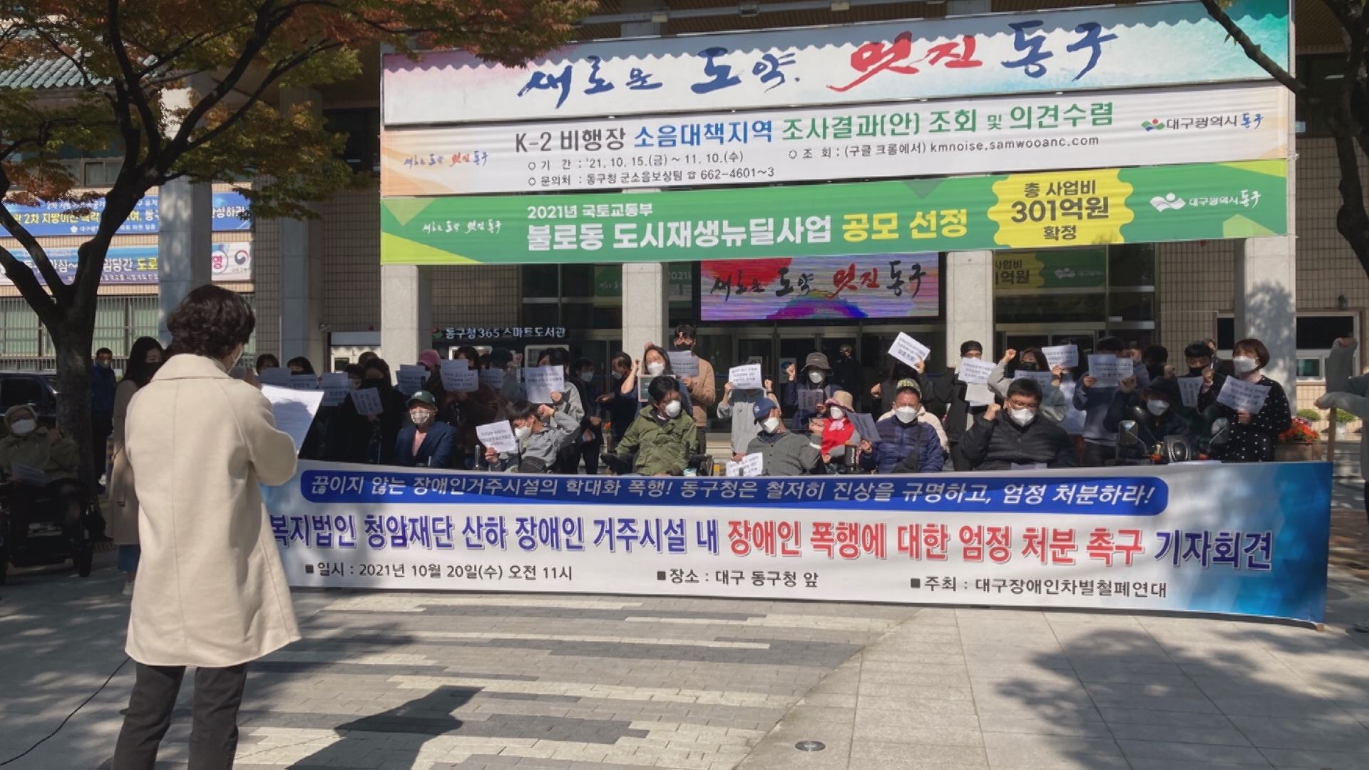 대구의 한 장애인 복지시설에서 사회복지사가 장애인을 폭행했다는 주장이 나왔습니다.대구장애인차별철폐연대 등은 "청암재단 산하 장애인 거주 시설에서 근무하는 사회복지사가 장애인을 상습 폭행했다는 신고가 있었다"고 주장했습니다."목격자에 따르면 정해진 식사 시간보다 일찍 개인 밥상을 펼쳤다는 이유로 장애인...