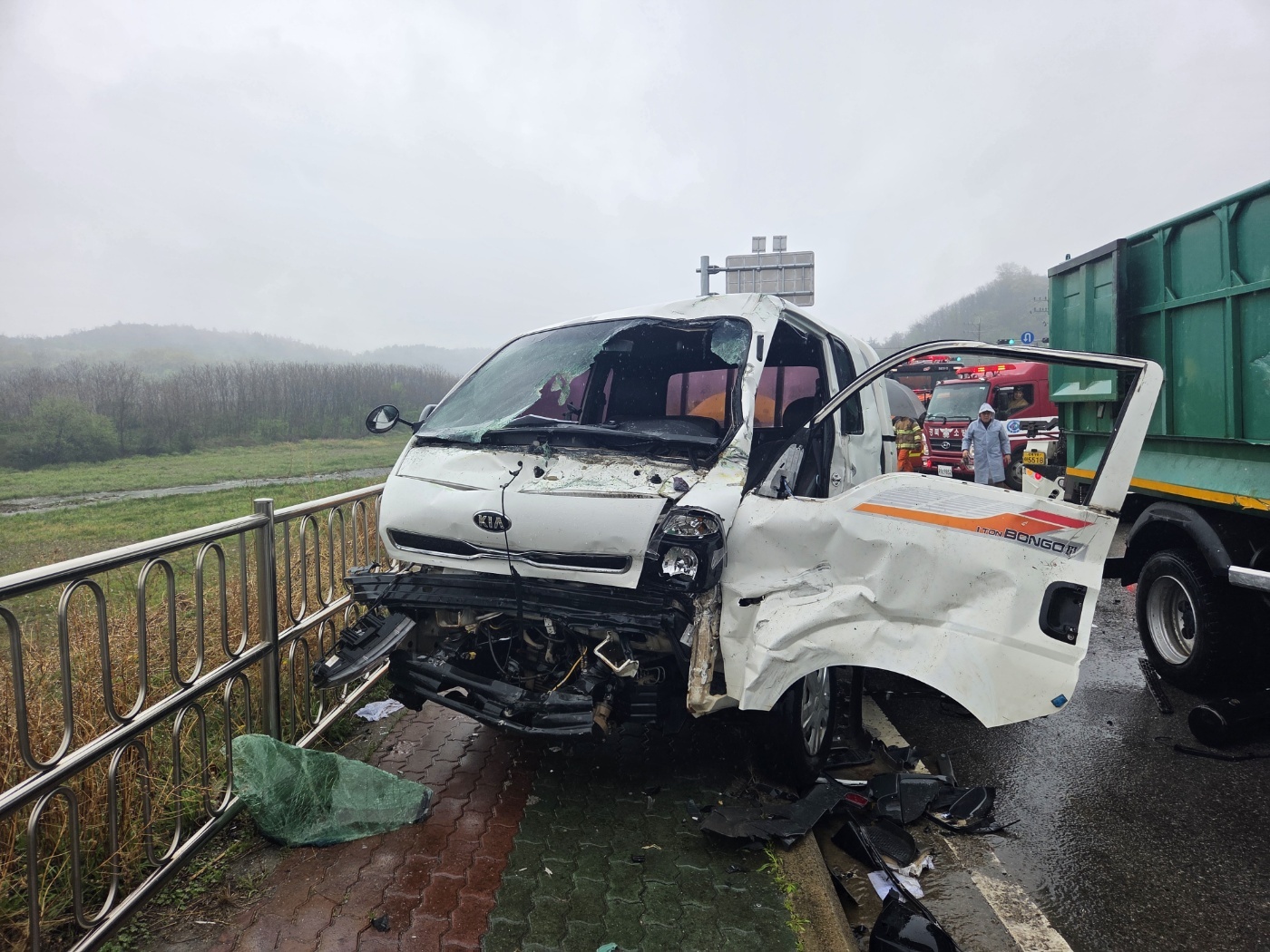 사진 제공 송영훈4월 22일 오후 3시 반쯤 경북 청송군 진보면의 한 교차로에서 달리던 1톤 화물차가 유턴하는 5톤 화물차를 들이받는 사고가 났습니다.1톤 화물차 운전자인 50대 남성이 크게 다쳐 병원으로 옮겨졌습니다.경찰은 빗길에 차가 미끄러진 건지, 운전자가 신호를 위반했는지 등 정확한 사고 원인을 조사 중입니...
