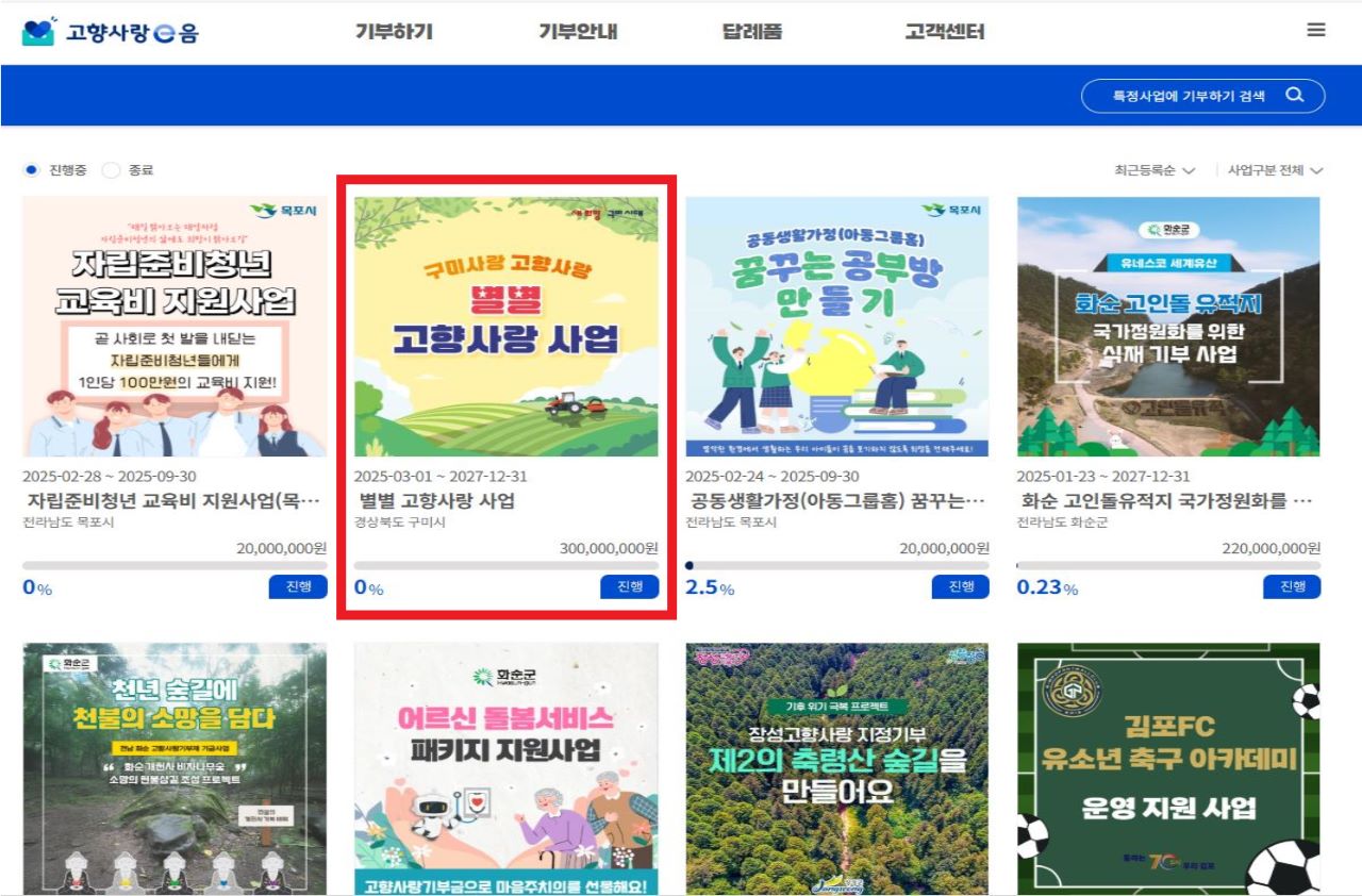 경북 구미시도 출향인들이 고향 사랑 기부금의 사용처를 정해 기부할 수 있도록 지정 기부 사업을 도입했습니다.구미시는 3월 1일부터 고향사랑e음을 통해 지정 기부 사업인 '별별 고향 사랑 사업' 모금을 시작했다고 밝혔습니다.'별별 고향 사랑 사업'은 모금액을 선산읍과 옥성면 등 구미 지역 8개 읍면의 어르신 지원에 ...
