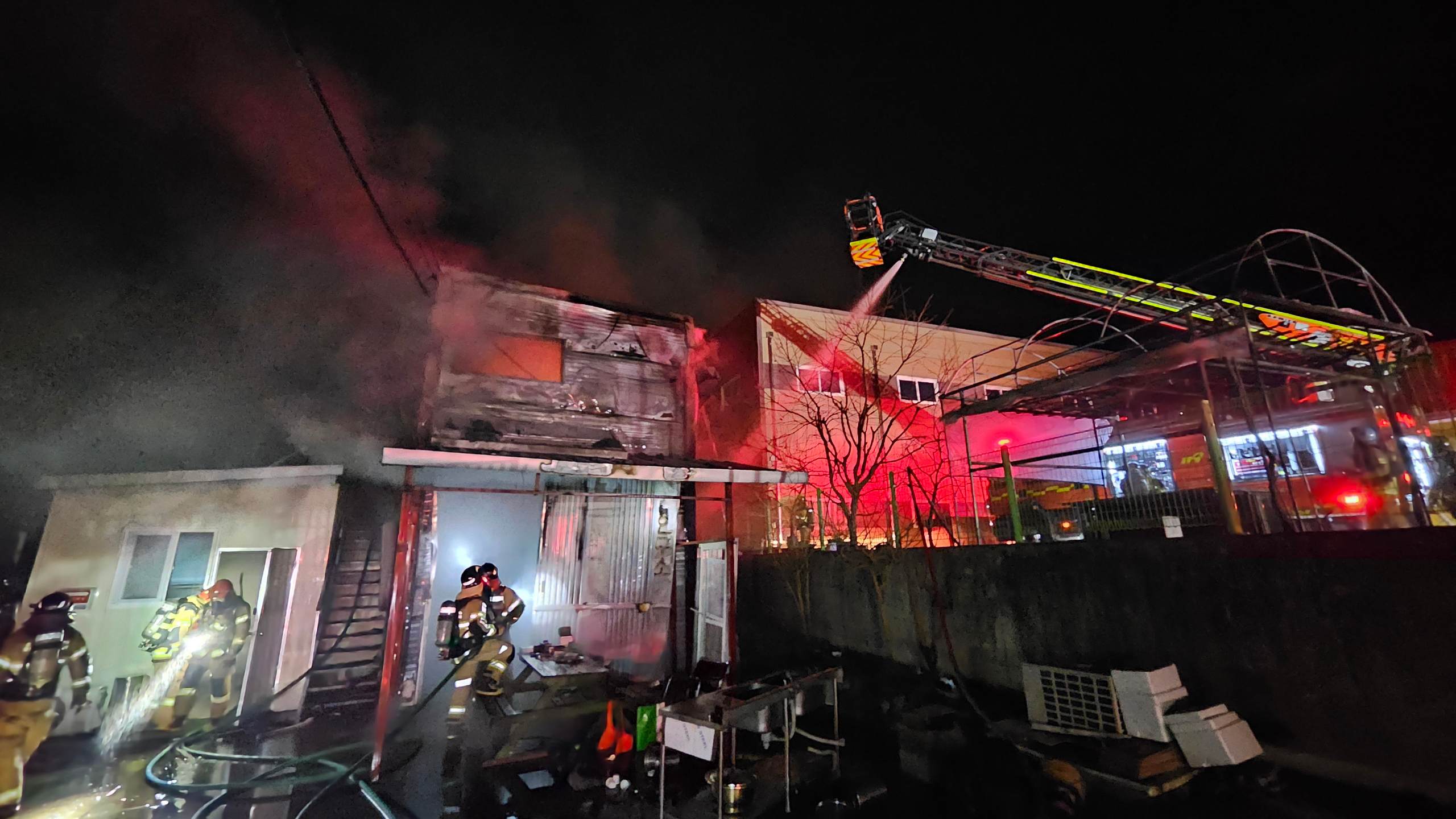 사진 제공 경북 경산소방서2월 27일 밤 11시 50분쯤 경북 경산시 남천면에 있는 침·재봉기 제조 공장에서 불이 났습니다.불은 2층짜리 건물 한 동을 모두 태운 뒤 소방서 추산 4천7백만 원의 재산 피해를 내고 2시간 10여 분 만에 꺼졌습니다.소방 당국은 정확한 화재 원인과 피해 규모를 조사하고 있습니다.