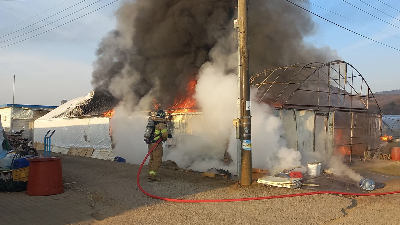 경북 성주 참외 비닐하우스 화재···비닐하우스 전소