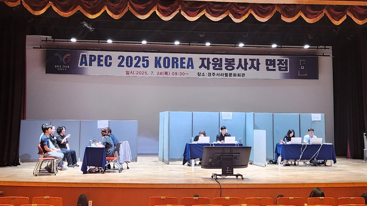 8월 10월 경주에서 열리는 APEC 정상회의에서 활동할 자원봉사자 254명이 최종 선발됐습니다.이들은 입출국·수송 지원과 숙소·관광 안내, 회의 운영 보조 등의 분야에서 자원봉사 활동을 펼칩니다.전국에서 1,069명이 지원해 1차 서류 심사와 2차 대면 면접을 통해 254명을 선발했습니다.여성 167명, 남성 87명으로 여성이 ...