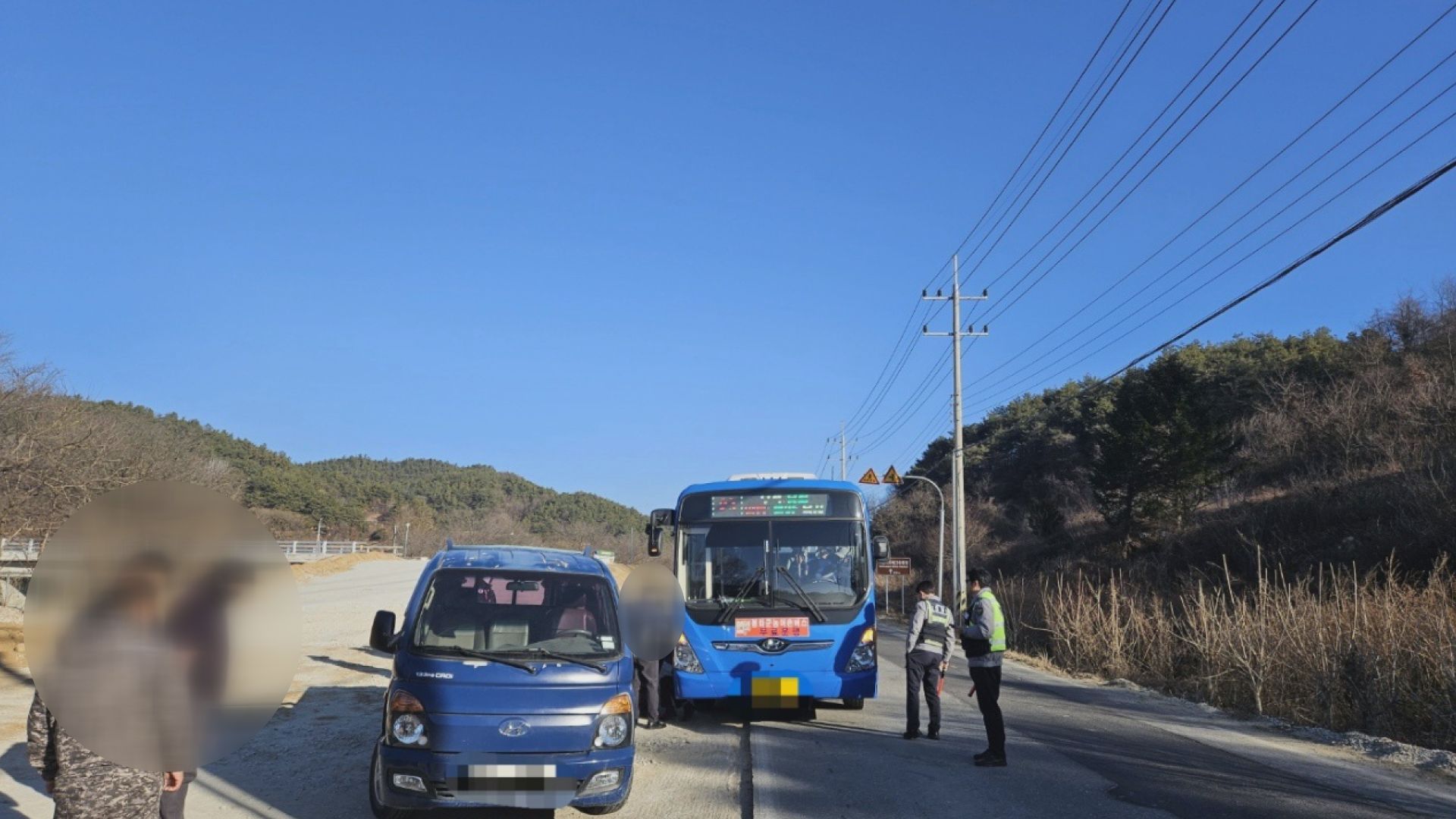 화물차와 시내버스 간 추돌사고로 5명이 다쳤습니다.12월 27일 오전 9시 37분쯤 경북 봉화군 봉화읍 삼계리 왕복 2차선 도로에서 1톤 화물차와 시내버스 간 추돌 사고가 나 80대 3명, 70대 1명, 60대 1명 등 5명이 다쳐 병원으로 옮겨졌습니다.경찰과 소방 당국은 1톤 화물차가 시내버스를 추월하다가 사고가 난 것으로 추...