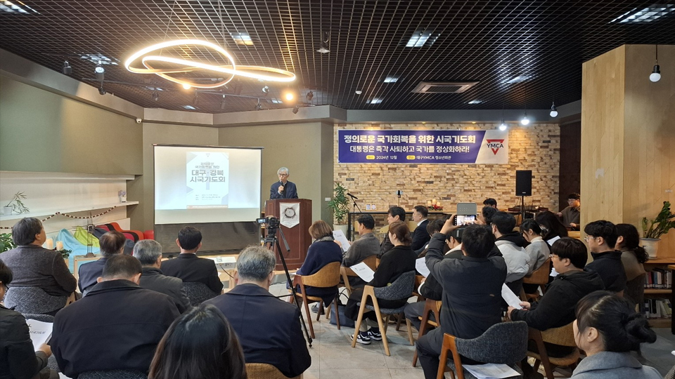 사진 제공 YMCA대구·경북 기독교청년회, YMCA가 12월 12일 12·3 내란 이후 처음으로 시국기도회를 열고 대통령 즉각 사퇴를 촉구했습니다.이들은 "공의로운 국가 회복을 위해 민주적 시민으로서 기도하고 행동해야 할 때"라며 "대통령을 비롯 불법 계엄령에 관여한 모두를 심판하기 위해 시민사회와 함께 행동하겠다"고 밝...