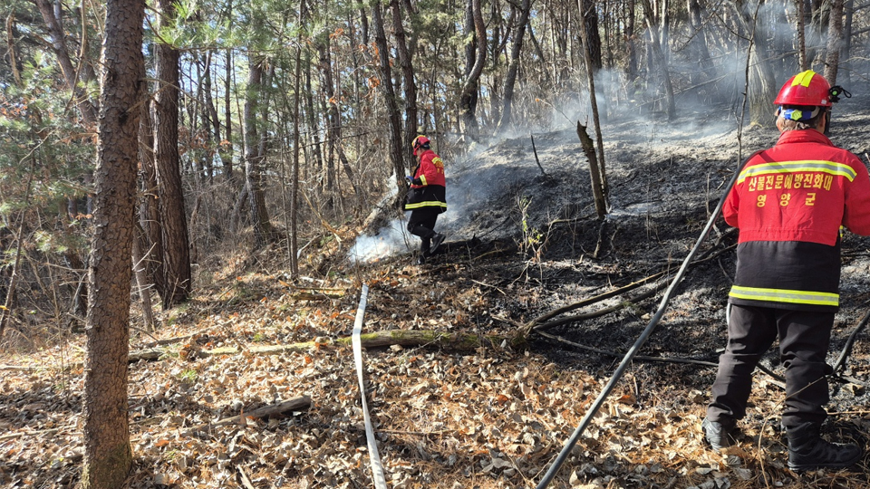 사진 제공 산림청12월 10일 오전 11시 50분쯤 경북 영양군 청기면의 한 야산에서 불이 났습니다.산림 당국은 헬기 5대, 차량 25대, 인력 70여 명을 투입해 1시간 만에 불을 껐습니다.비슷한 시각 경북 울진군 북면의 한 야산에서도 불이 나 소방 당국이 헬기 4대와 인력 40여 명을 투입해 진화 중입니다.현재 경북 동해안 ...