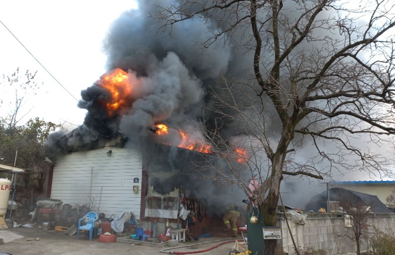 화목보일러에서 시작된 화재로 가정집 전체 태워