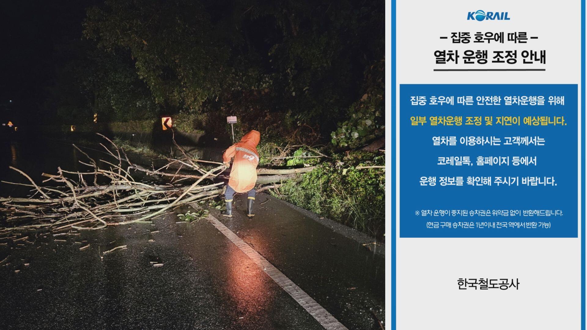 많은 비 내리면서 주민 긴급 대피…도로 침수·열차 지연 운행