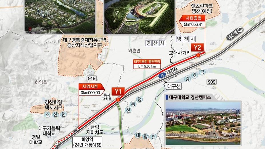 사진 제공 영천시대구 도시철도 1호선이 영천까지 연장됩니다. 영천시는 대구 도시철도 1호선 하양에서 영천 연장 사업이 기획재정부 재정사업평가위원회 예비타당성 조사를 통과했다고 밝혔습니다.이에 따라 총사업비 2,341억 원을 투입해 경산 하양에서 영천시 금호읍까지 5.7km 구간에 정거장 2곳을 짓습니다. 대구 도시...