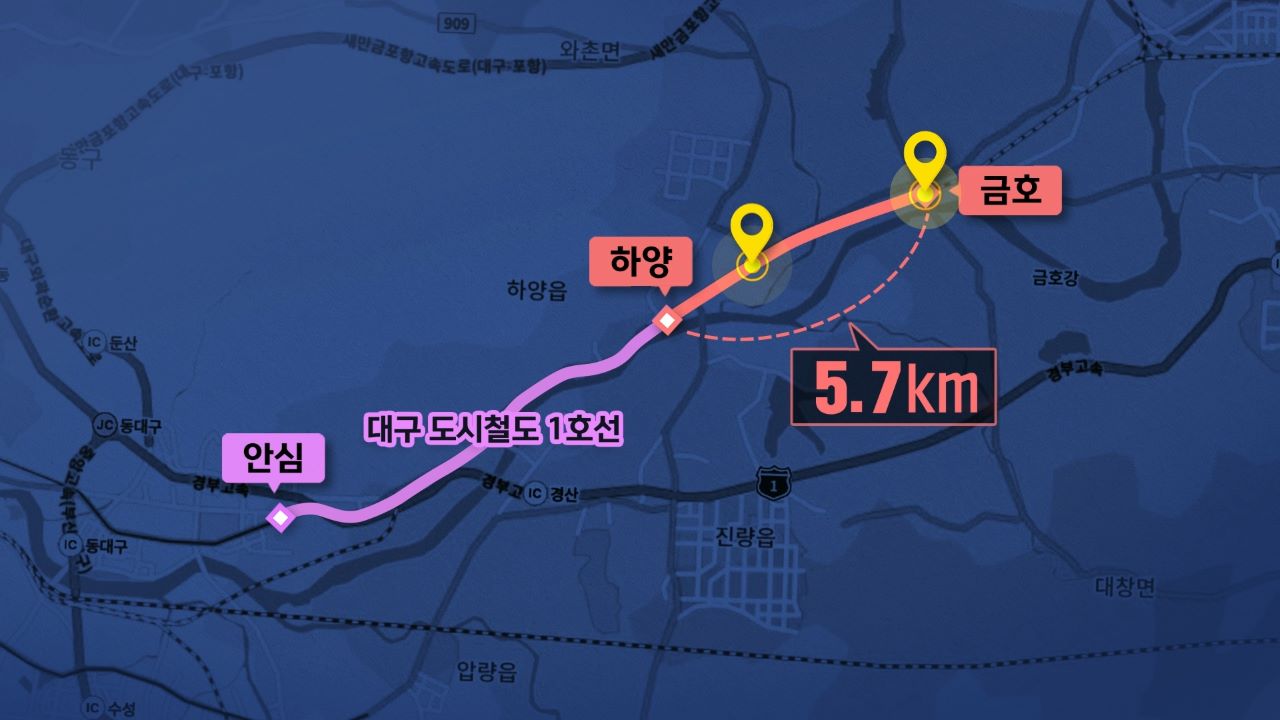 ◀앵커▶대구 도시철도 1호선 영천 연장 사업이 정부의 예비타당성조사를 최종 통과했습니다.앞으로 대구 도시철도 1호선이 경산을 거쳐 영천까지 이어지는 사업이 본격 추진됩니다.2024년 말이면 대구 도시철도 1호선 종점역이 안심역에서 경산 하양역으로 3개 구간이 늘어나게 되는데요, 지역 발전에 대한 기대가 커지고 있...