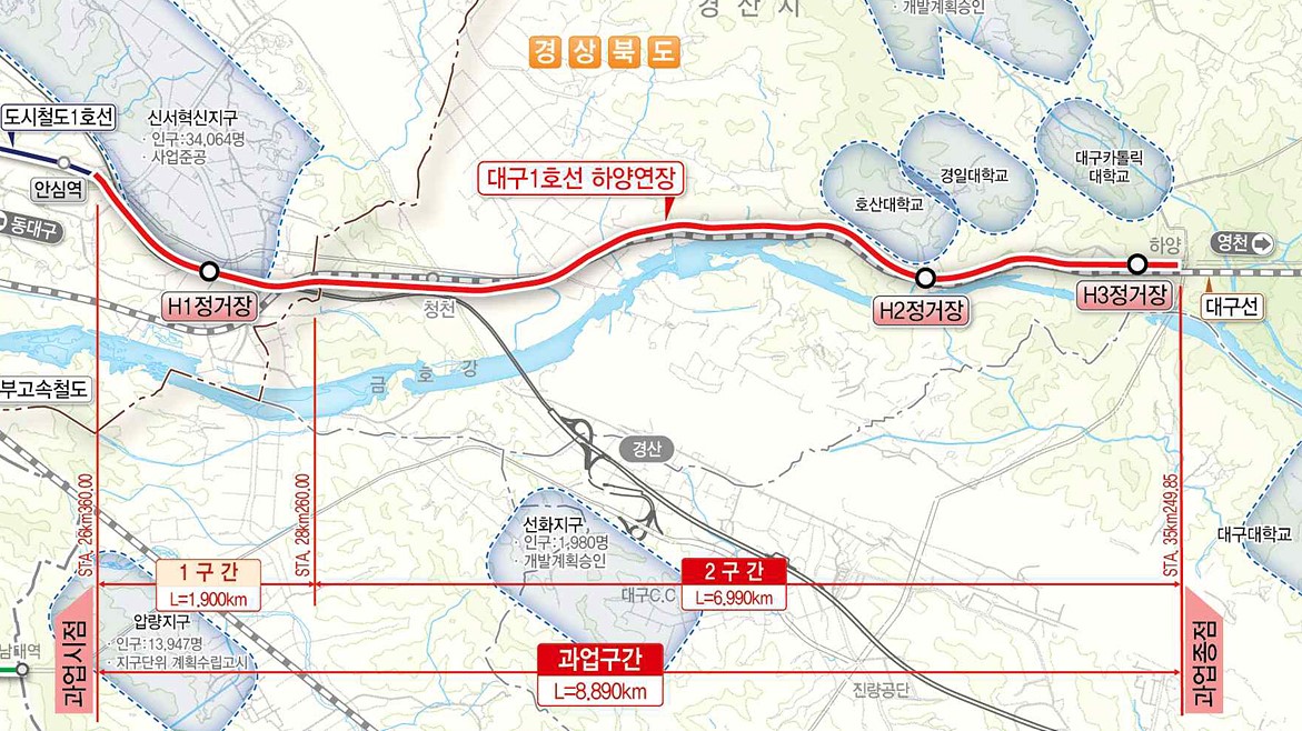 대구 도시철도 1호선 연장선 대구 구간 역 이름 '대구한의대병원'