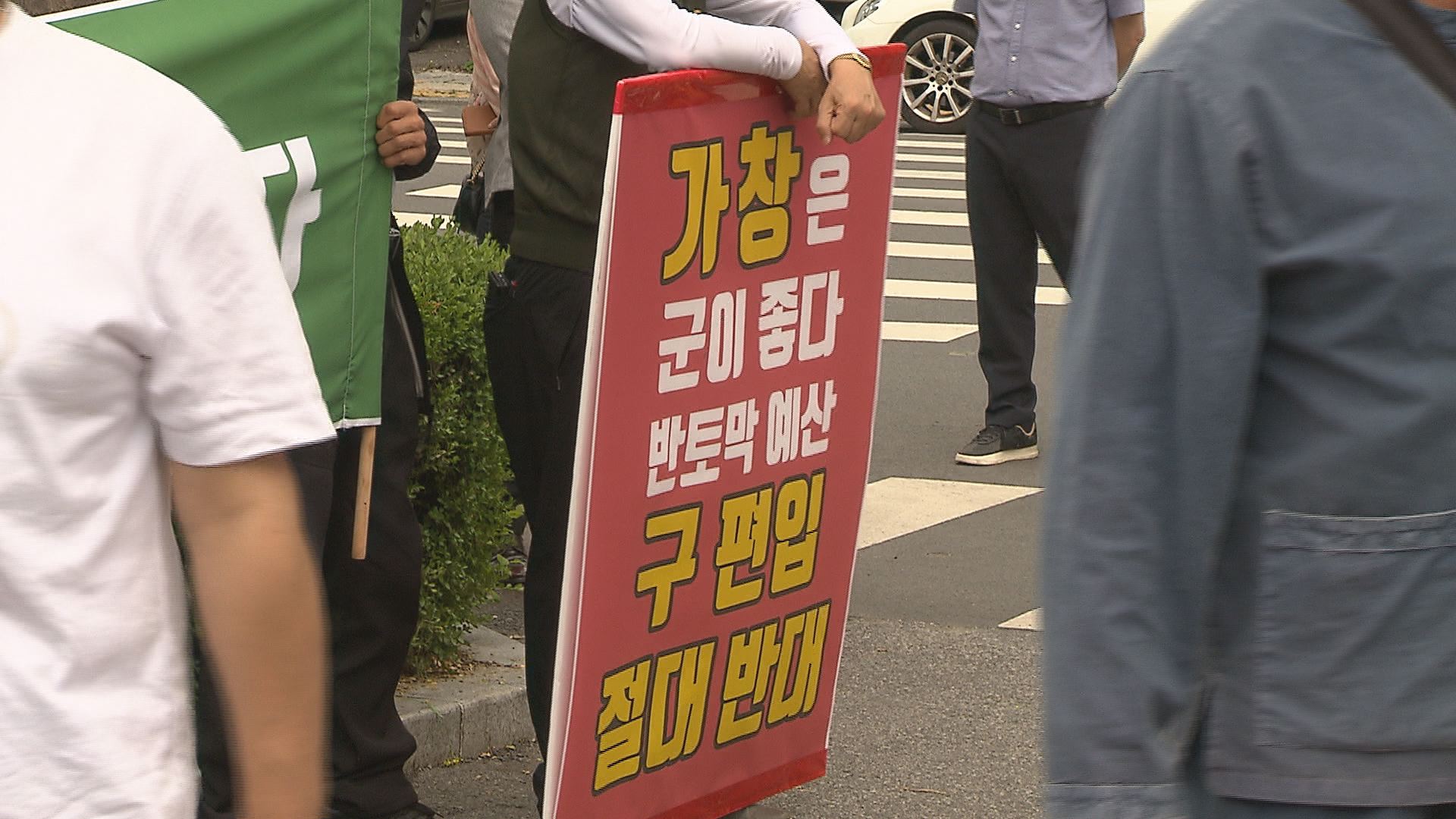 ◀앵커▶지난 3월 초, 홍준표 대구시장이 달성군 가창면을 수성구로 편입하겠다고했죠? 이와 관련한 절차가 시작됐습니다.대구시가 시의회에 관할구역 변경 동의안을 내기 전 주민설명회를 열었는데, 고성만 오가다 끝이 났습니다.찬반으로 팽팽히 나뉜 주민들.갈등의 골만 더 깊어지고 있습니다.김은혜 기자가 보도합니다. ◀...
