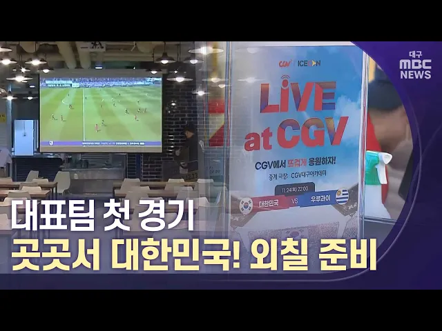 ◀앵커▶카타르 월드컵, 결전의 시간이 다가오고 있습니다.우리 국가대표팀의 예선 첫 경기인 우루과이전이 이제 2시간도 남지 않았습니다.대구에서는 대규모 거리 응원전은 없지만, 지역 대학가 등 곳곳에서 시민들이 모여 대표팀의 승리를 기원하고 있습니다.응원전을 준비하고 있는 경북대학교에 김은혜 기자가 나가 있죠?...