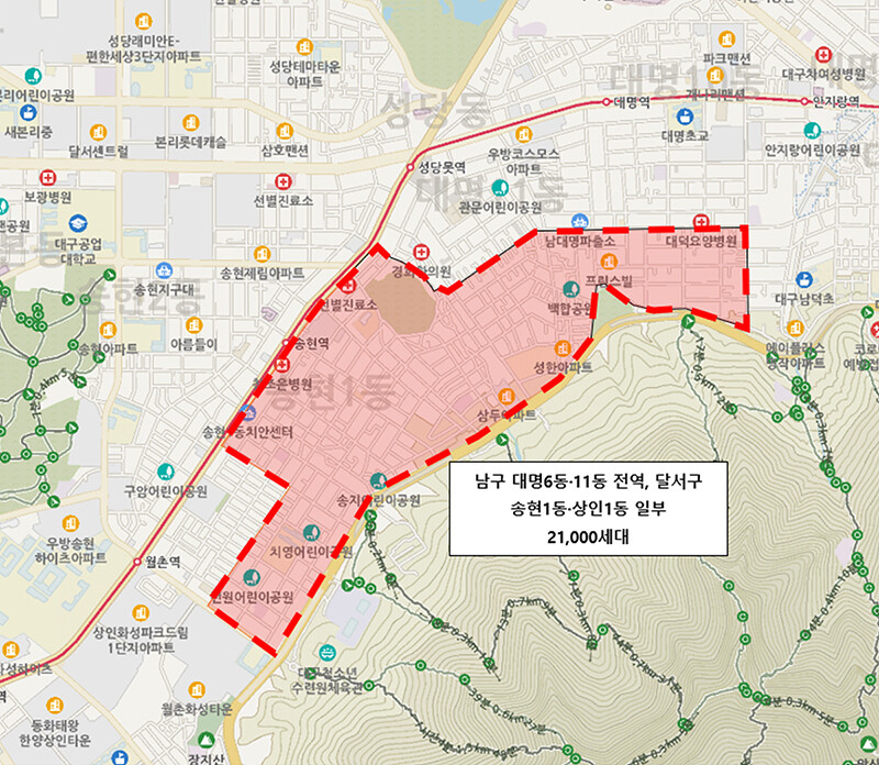 대구시 상수도 사업본부는 11월 17일 밤 10시부터 18일 새벽 사이 남구 대명 6동과 10동 전역, 달서구 송현1동과 상인1동 21,000여 세대에 흐린 수돗물이 나올 수 있다고 밝혔습니다.송현 가압장 펌프 공사로 배수구역이 조정되는 지역으로, 상수도 사업본부는 미리 필요한 물을 받아두는 등 준비해 달라고 부탁했습니다.(...