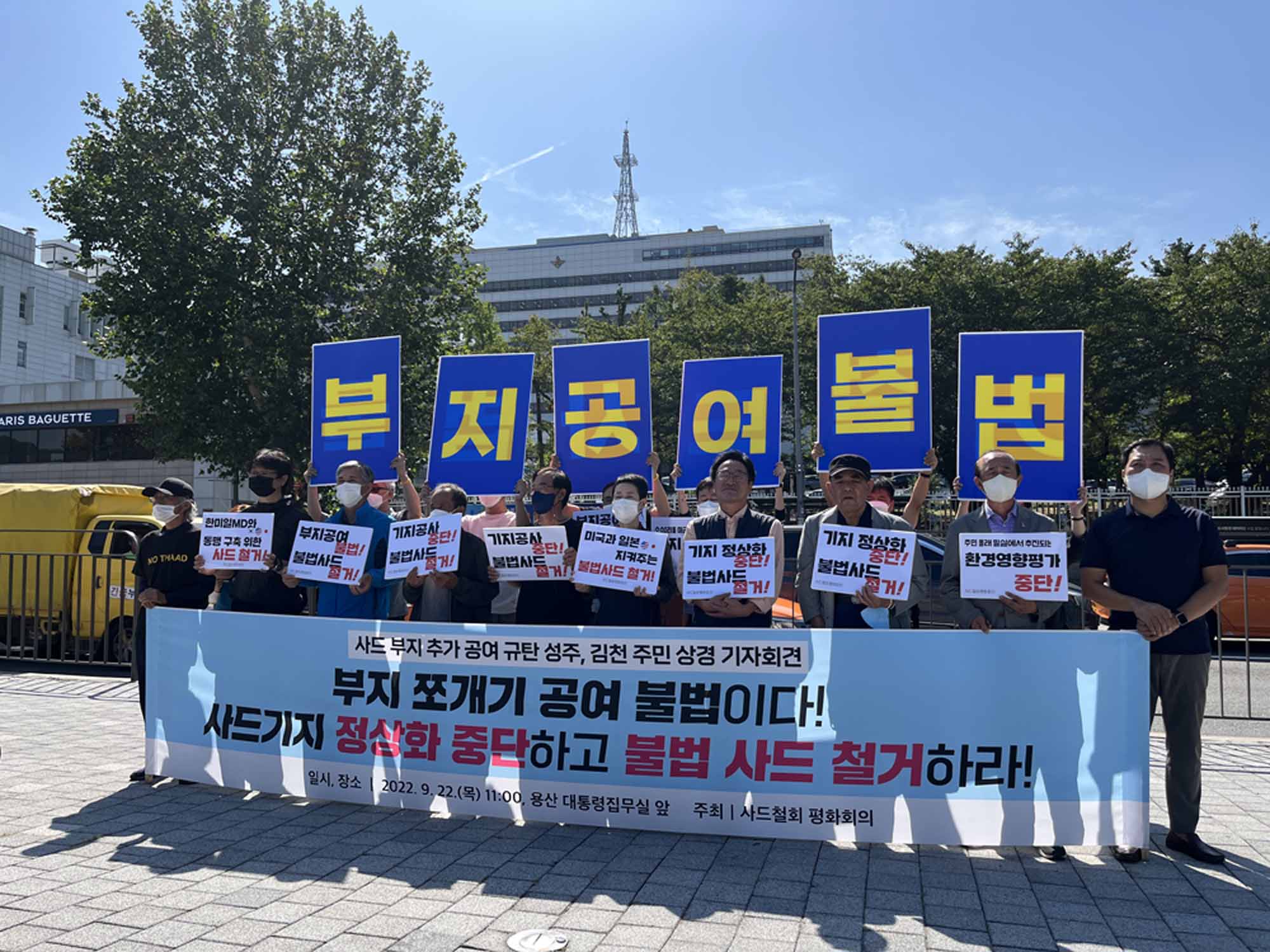 사드 반대단체·주민, 대통령실 앞 기자회견 "부지 쪼개기 공여는 불법"
