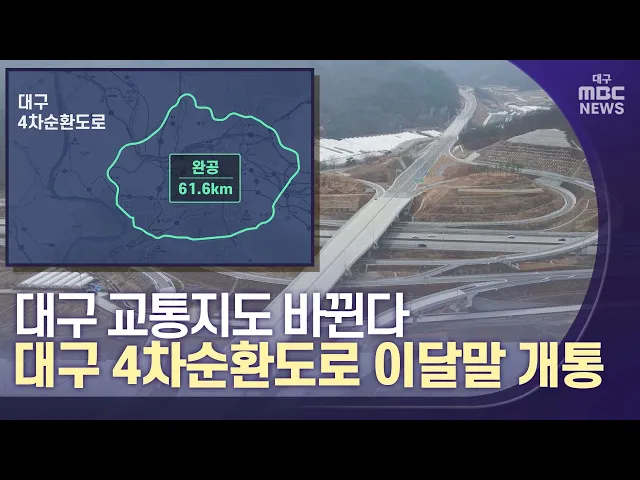 ◀앵커▶네, 제 뒤로 길게 뻗은 이 도로가 바로 4차 순환도로입니다. 순환도로 첫 계획을 수립한 지 35년 만에, 3월 말 정식 개통을 앞두고 있습니다.자, 윤윤선 앵커, 어떤 변화가 예상됩니까?대구 도심을 지나는 교통량을 분산해 정체 현상을 해소하고 대구 교통지도를 새롭게 구축하는 역할을 하게 될 것으로 예상되는데요...