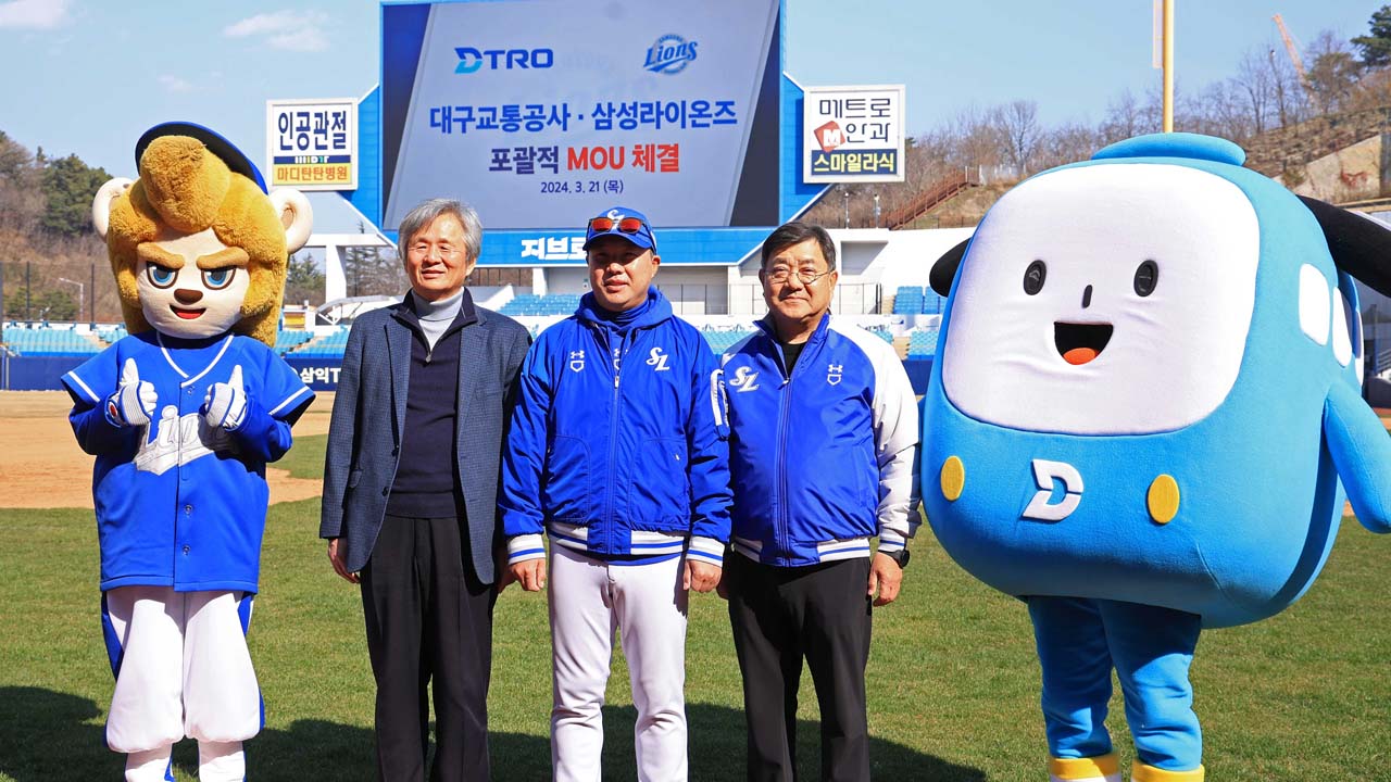 사진 제공 삼성라이온즈삼성라이온즈와 대구교통공사가 삼성라이온즈파크와 도시철도 이용 활성화를 위한 업무 협약을 맺었습니다.업무 협약을 통해 대구 도시철도 2호선 대공원역 하차 시 주장 구자욱 선수와 원태인 선수의 목소리로 하차 안내 방송이 이뤄집니다.또, 도시철도 역사 내에 삼성라이온즈 경기 일정을 안내하...