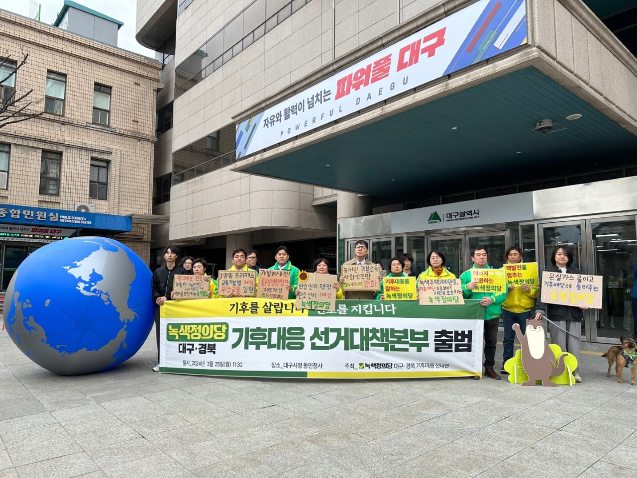 녹색정의당이 대구·경북 기후 위기 대응 선거대책본부를 출범했습니다.3월 25일 오전, 대구시청 동인청사 앞에서 진행된 출범식에는 대구·경북에 출마하는 지역구 후보와 비례대표 후보가 참석했습니다. 허승규 녹색정의당 선거대책본부장은 기후 위기와 지역 소멸 시대, 거꾸로 가고 있는 대구·경북의 기득권 정치를 심판...